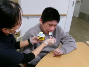 昼食には保護者会からいただいた鬼の形のケーキを食べて、皆さん楽しまれました!
